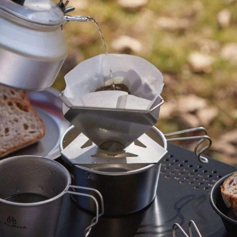 ソロキャンプの朝を特別なものにするのが、挽きたてのコーヒーです。手動で豆を挽くという行為自体が、立派な暇つぶしとなり、出来上がったコーヒーの味は格別です。「手間を楽しむ」というソロキャンプの真髄を教えてくれるアイテムです。上の画像は普段ソロキャンプの時に僕が使っているドリッパーです。THE ソロキャンプ道具って感じなので超おすすめです!